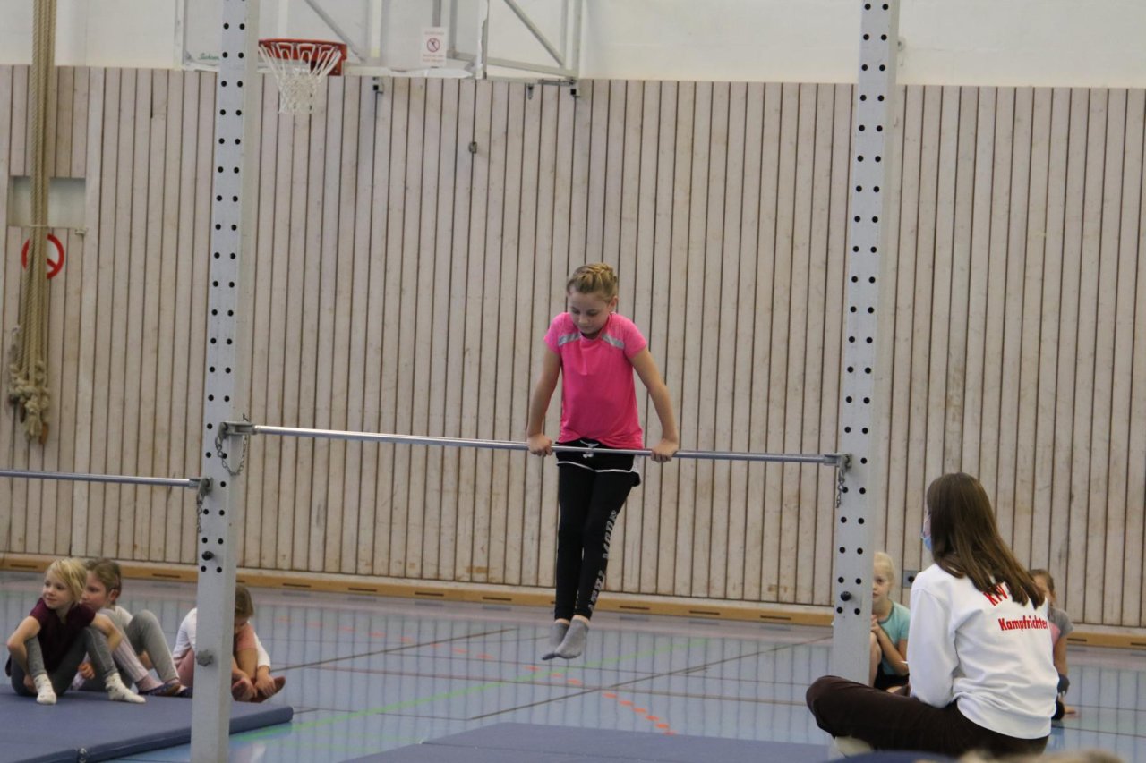 einstudierten Übungen der Pflichtstufen 1 und 2 an den Turngeräten. Die Aufregung war groß,