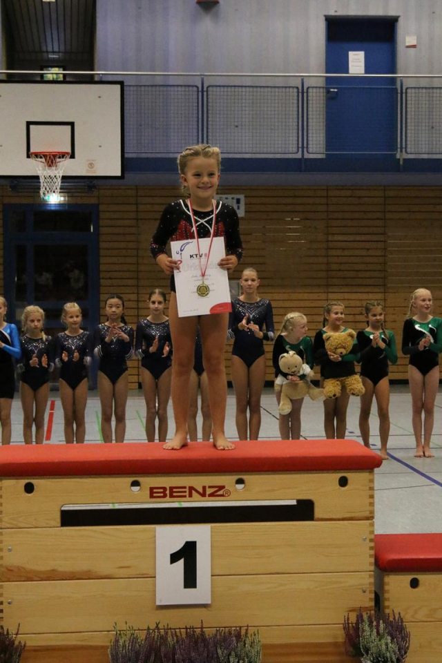 Die jüngsten Turnerinnen mit 6 Jahren sind Elina Mejrumjan, Helena Wesch und Lotta Hertzberg. Elina aus Moisling siegte in der P3 knapp vor Helena aus Kücknitz. Lotta startete bereits in der P4 und erreichte dort die Goldmedaille.