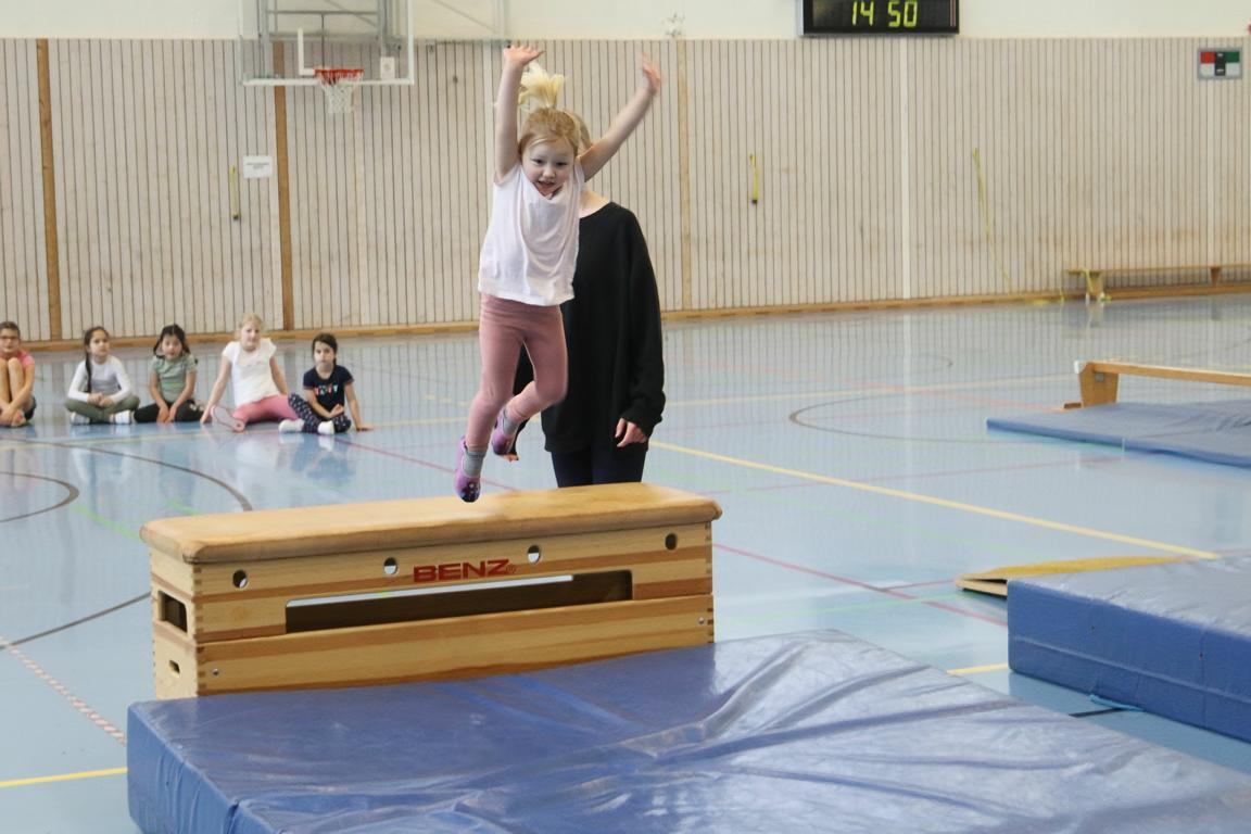 Zum ersten Mal vor den Kampfrichtern wurden Bank, Bodenmatte, Kasten und das Reck mit viel Spaß von den Kindern „beturnt“. Dafür gab es auch eine Medaille vom Veranstalter.