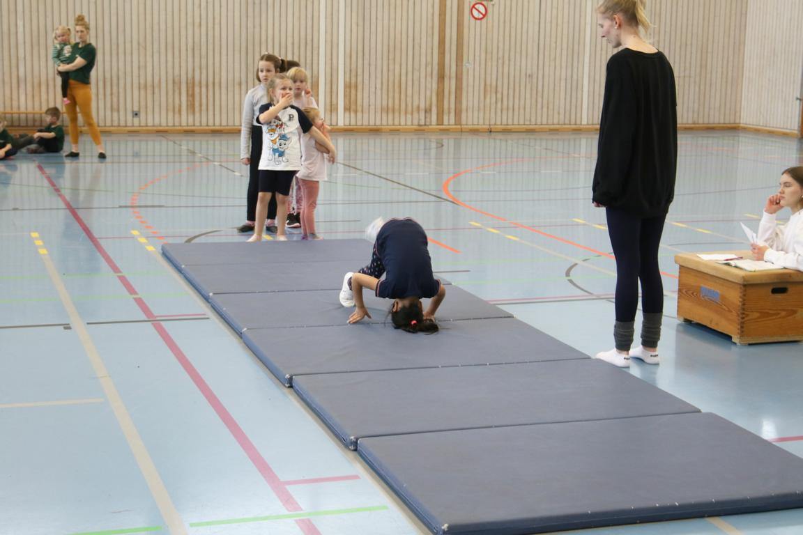 Zum ersten Mal vor den Kampfrichtern wurden Bank, Bodenmatte, Kasten und das Reck mit viel Spaß von den Kindern „beturnt“. Dafür gab es auch eine Medaille vom Veranstalter.