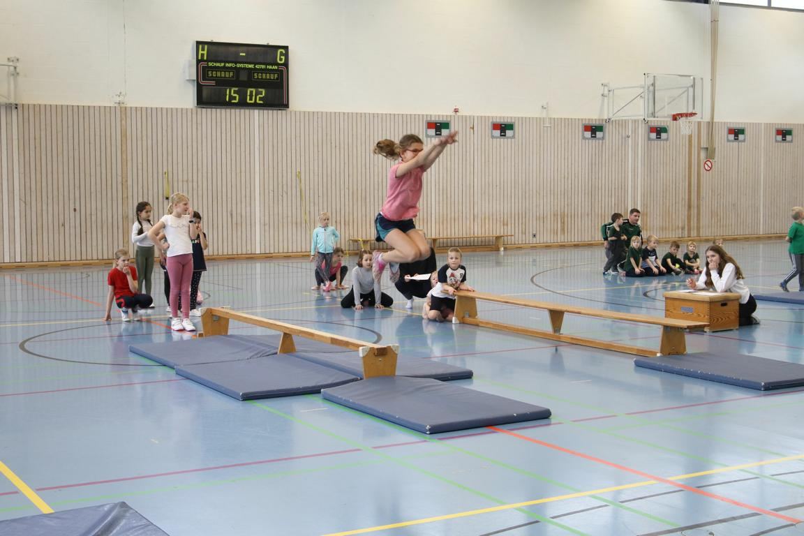 Zum ersten Mal vor den Kampfrichtern wurden Bank, Bodenmatte, Kasten und das Reck mit viel Spaß von den Kindern „beturnt“. Dafür gab es auch eine Medaille vom Veranstalter.