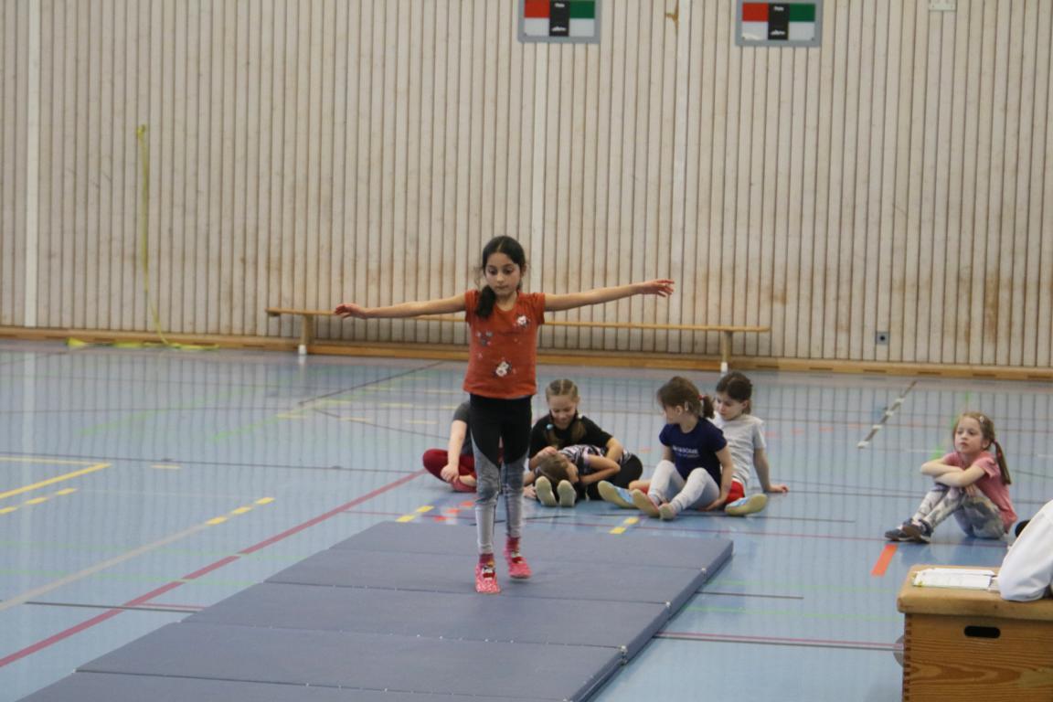 Zum ersten Mal vor den Kampfrichtern wurden Bank, Bodenmatte, Kasten und das Reck mit viel Spaß von den Kindern „beturnt“. Dafür gab es auch eine Medaille vom Veranstalter.